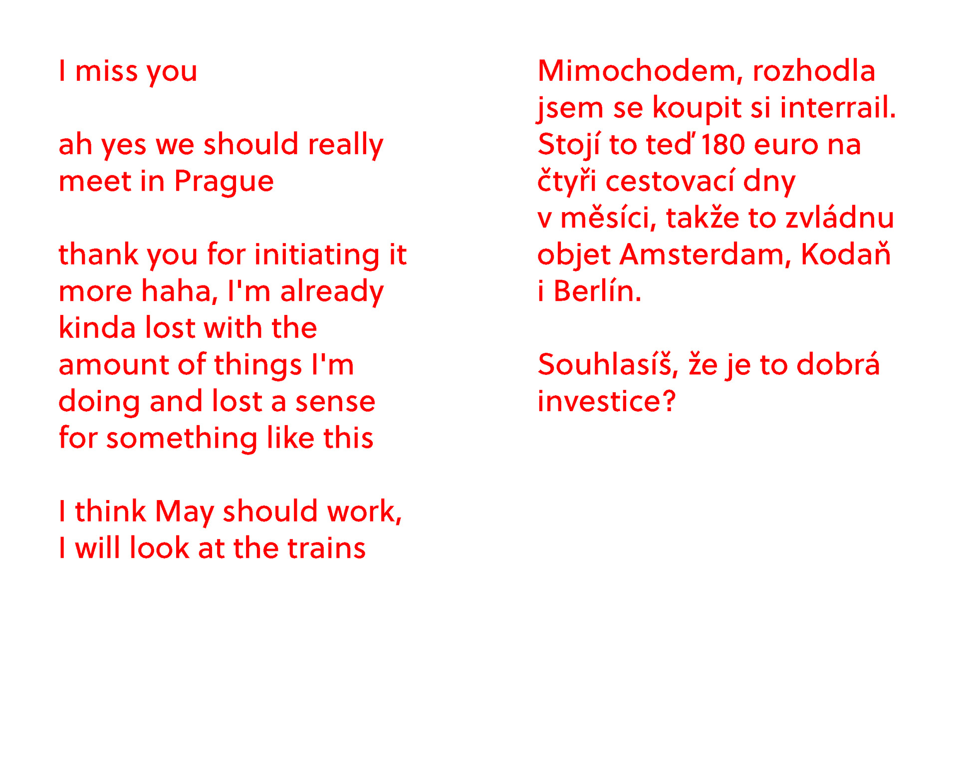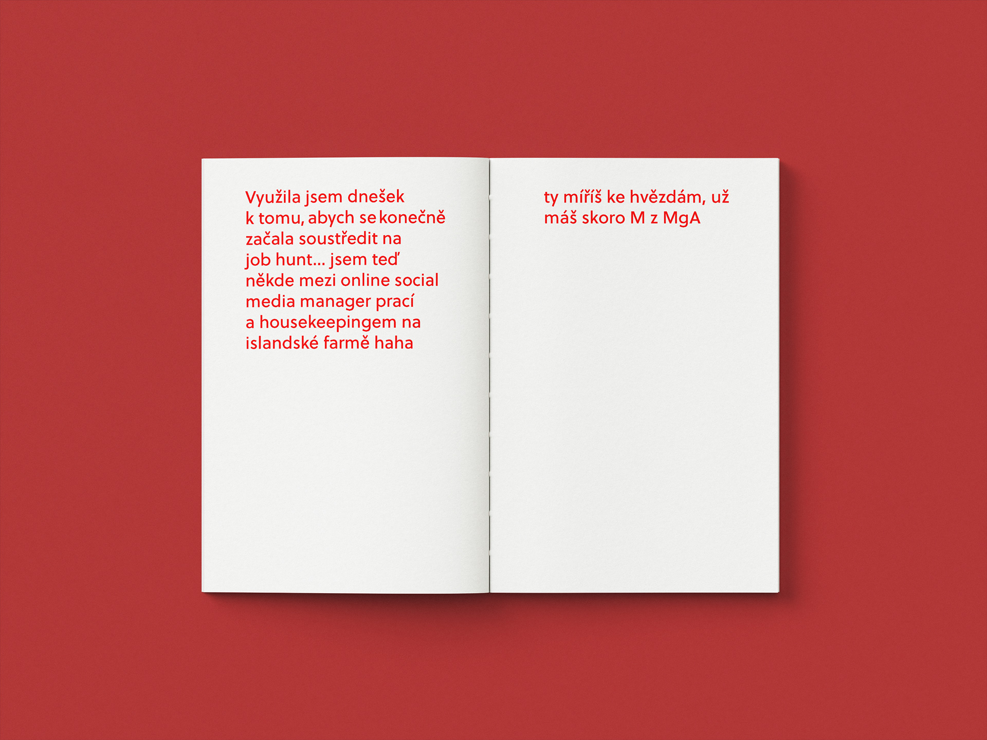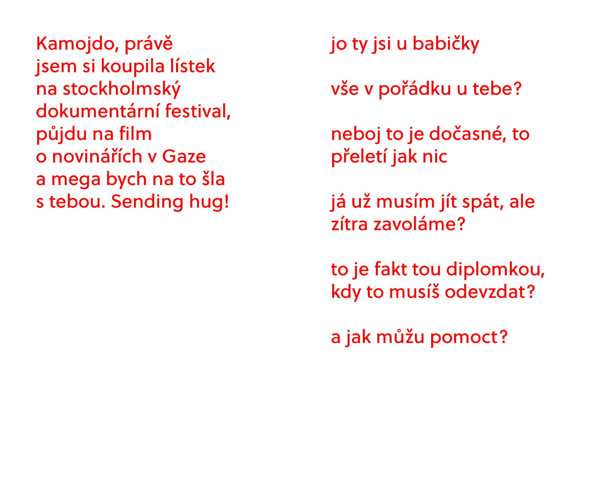 autorská kniha ve formě deníku zachycující úryvky on-line konverzací s nejbližšími.