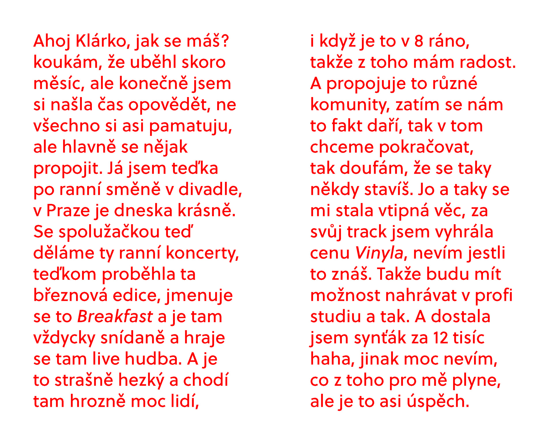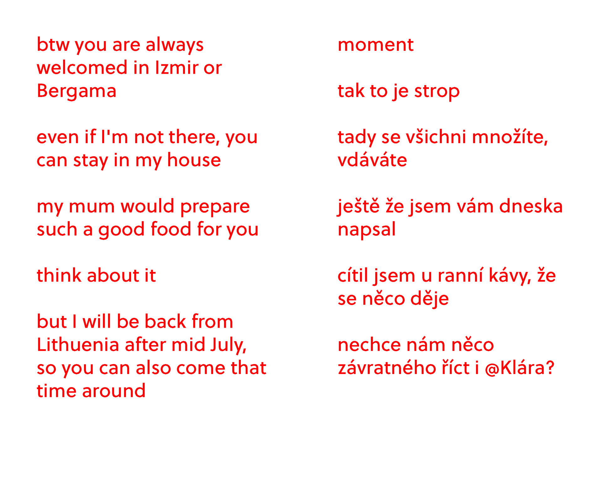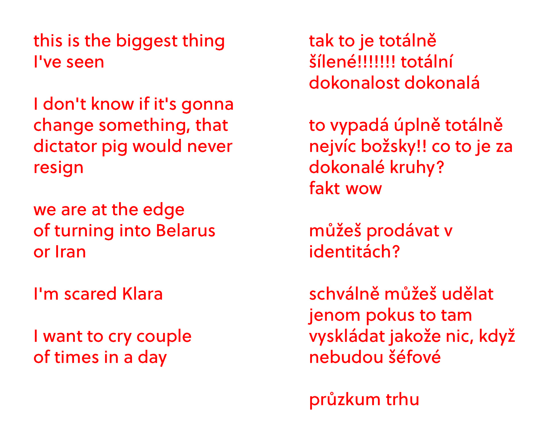 autorská kniha ve formě deníku zachycující úryvky on-line konverzací s nejbližšími.