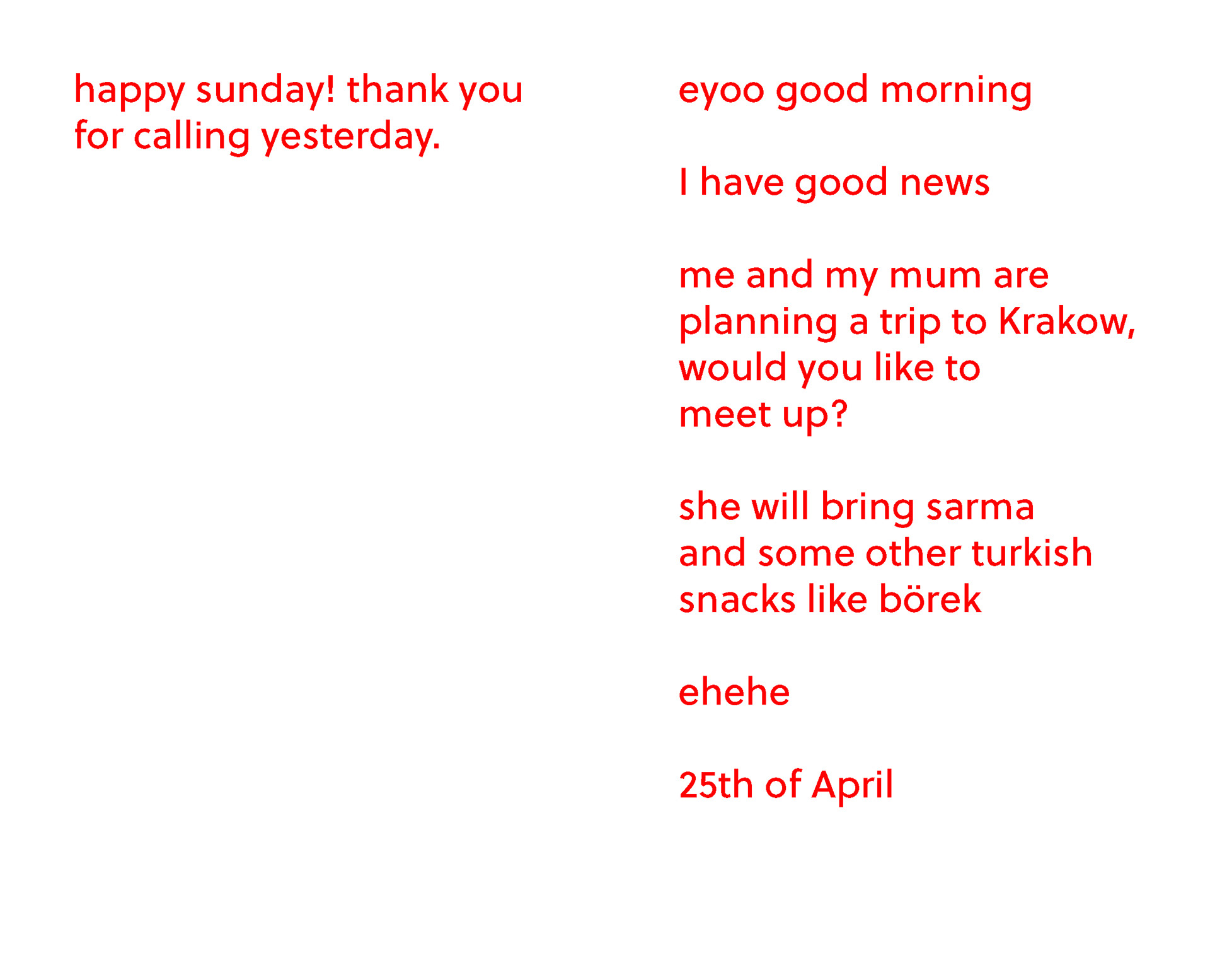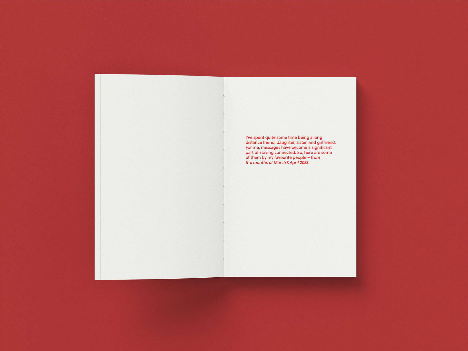 "I've spent quite some time being a long distance friend, daughter, sister, and girlfriend. for me, messages have become a significant part of staying connected. so, here are some of them by my favorite people – from the months of March&April 2025."