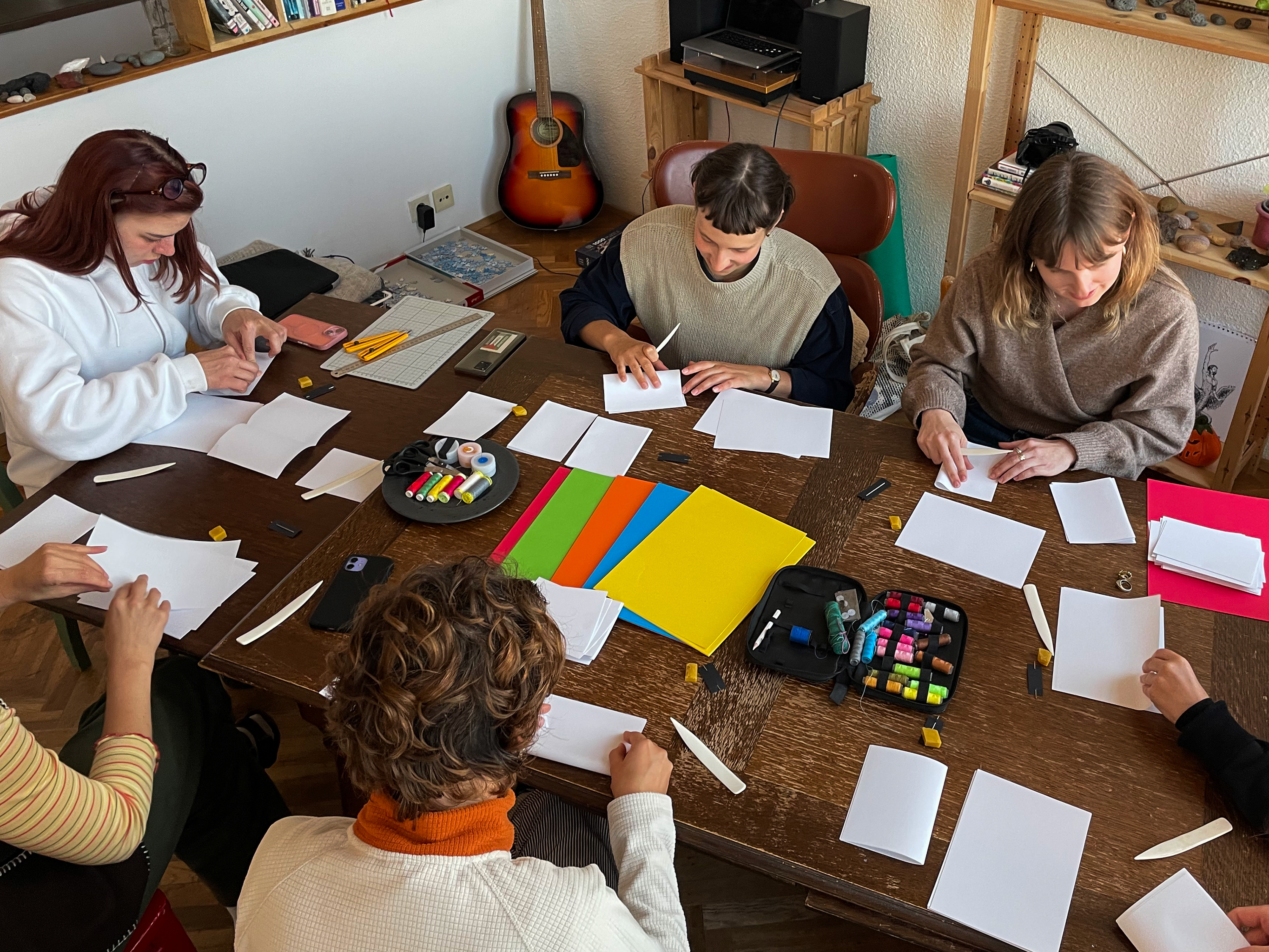 workshopy knižní vazby a doprovodné vizuální materiály. ilustrace vytvořila