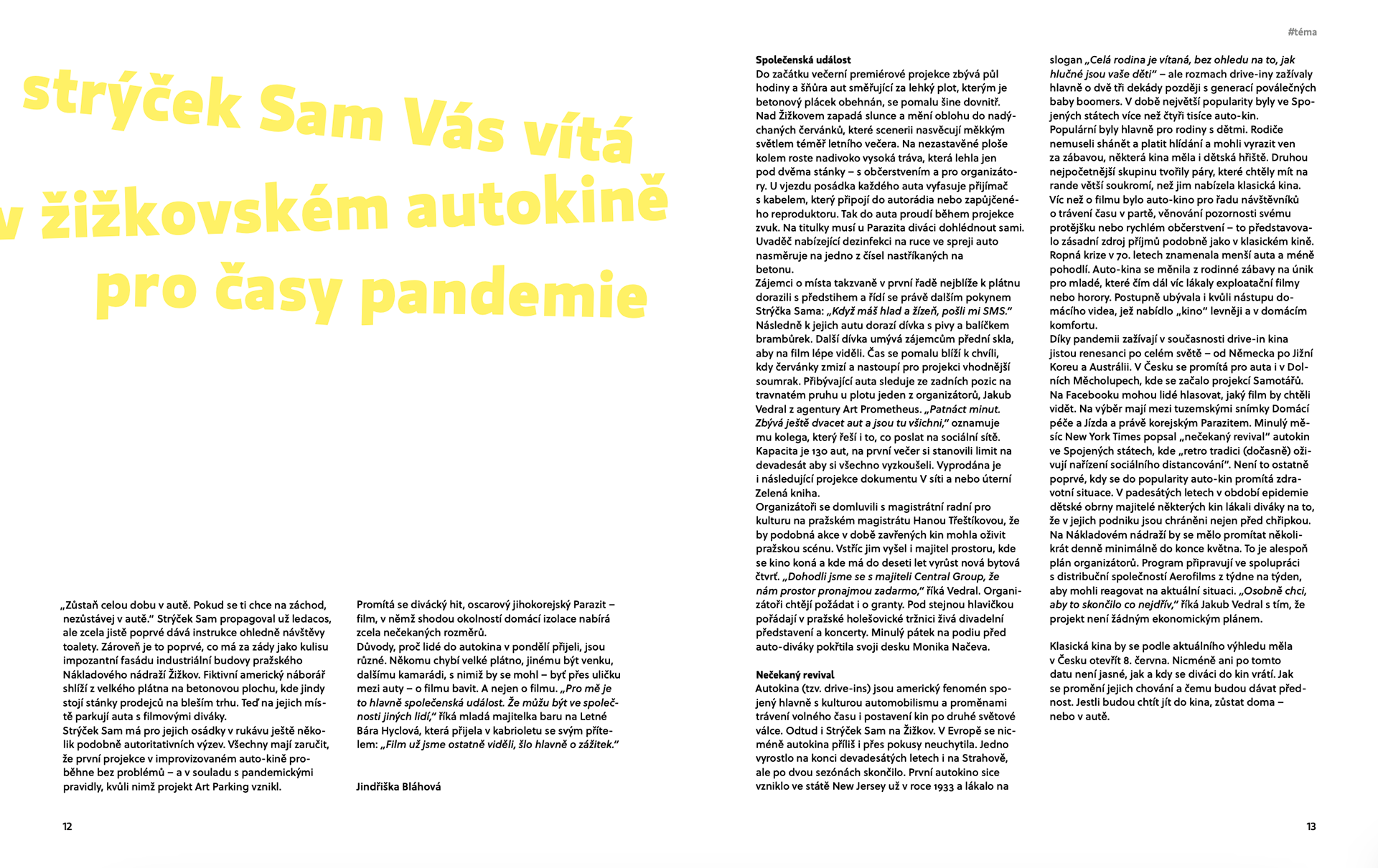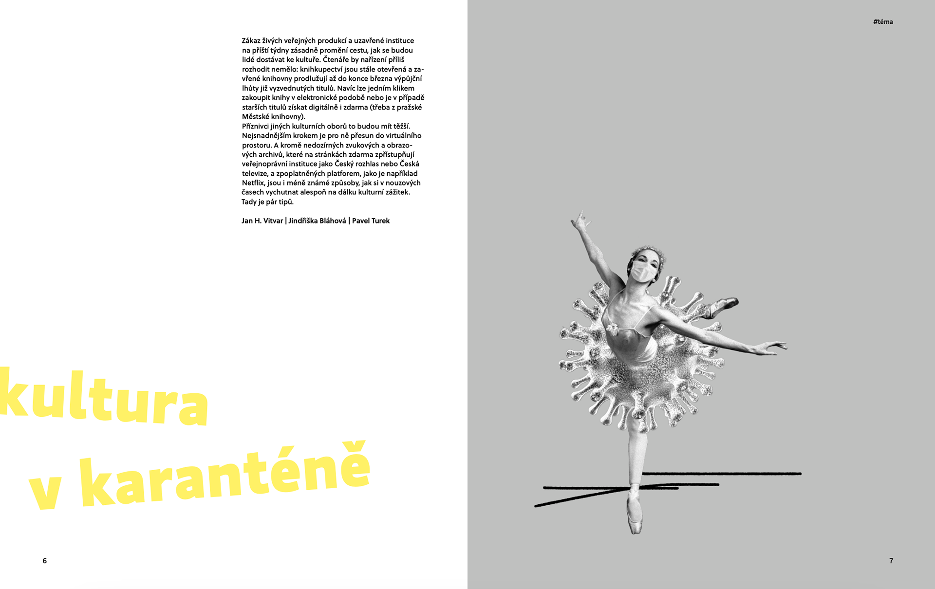 fiktivní návrh magazínu s ilustracemi o alternativních kulturních možnostech během pandemie COVID-19. obsah původně pochází z časopisu Respekt.