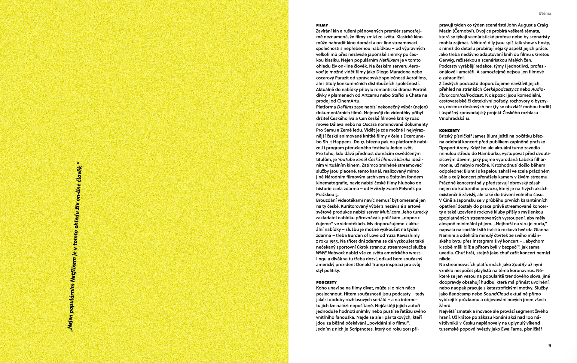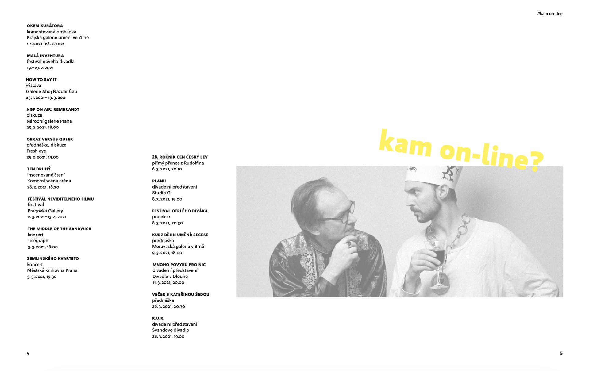 a fictional magazine design & illustrations about alternative cultural options during the COVID-19 pandemic. the content is originally from the magazine Respekt.