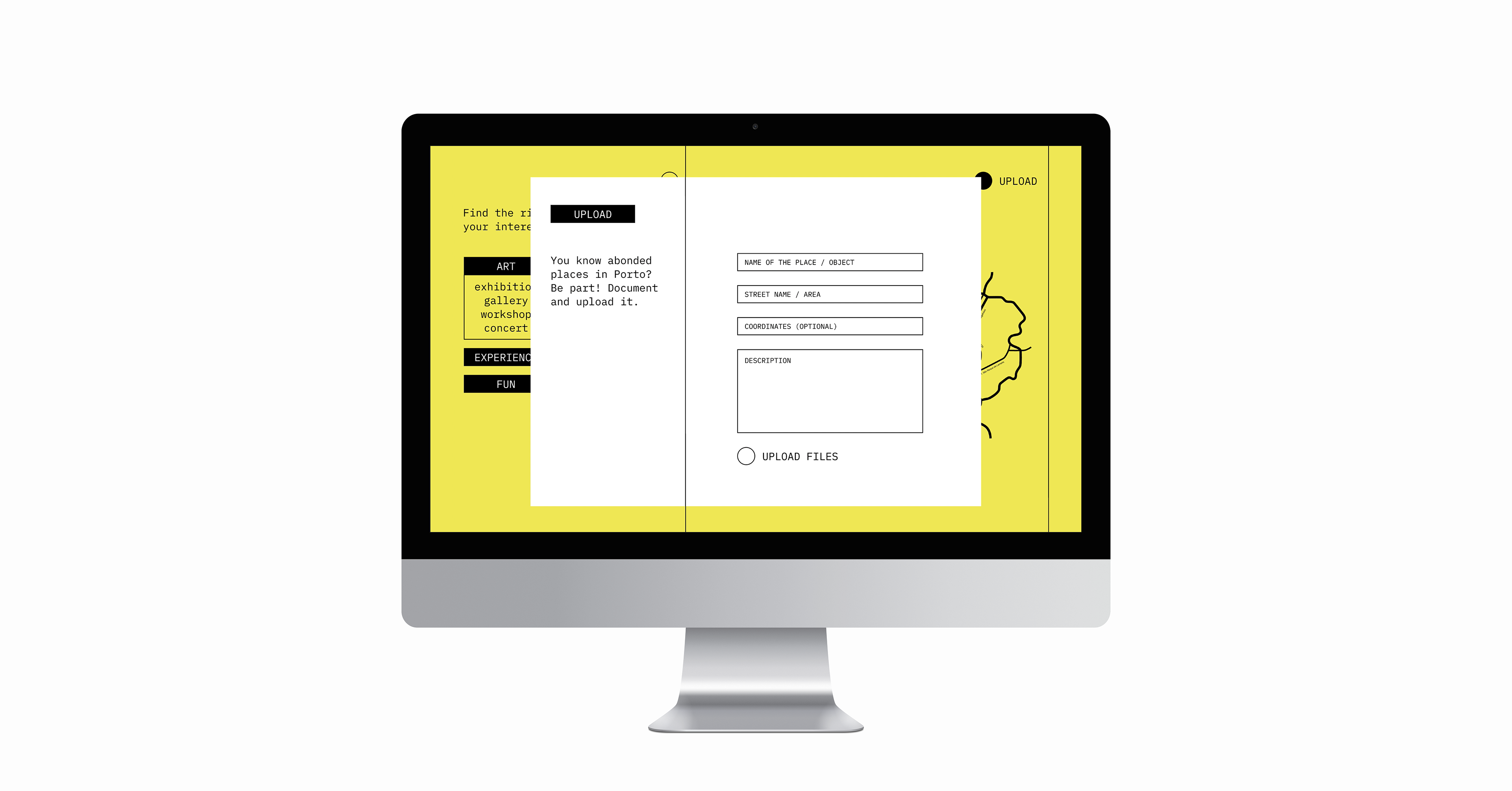 online mapa, která nabízí inspiraci pro nové využití opuštěných budov ve městě Porto. průvodce je rozdělen do tří kategorií a navrhuje buď dlouhodobé plány využití, nebo jednoduchá dočasná řešení, která může snadno realizovat kdokoli. místní obyvatelé mohou do mapy jednoduše přispívat přidáváním nových míst a návrhů. projekt vytvořen spolu s Jakub Maślak, Tom Gernegross a Catharina Koehler.